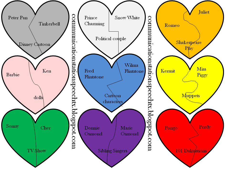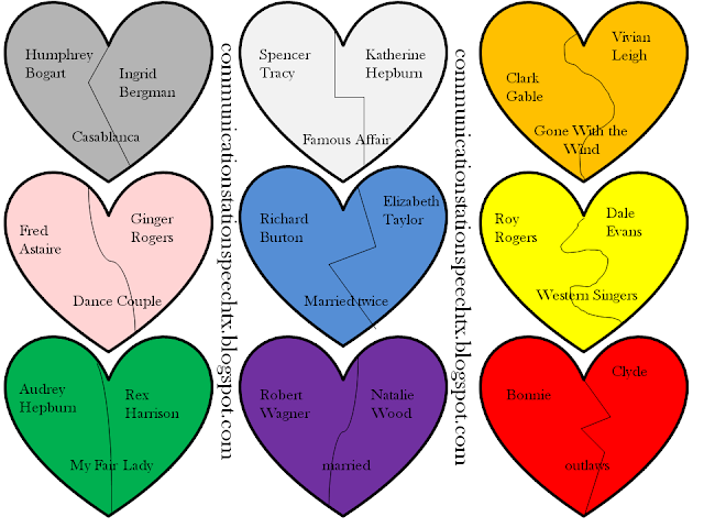 This activity is a Famous Couple Heart Puzzle Match Up.  Download, print, cut and have your clients match up which pair of famous people go together!